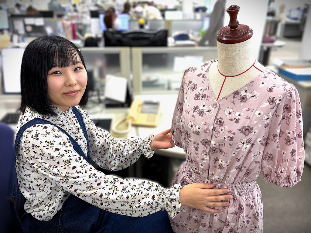 お客様の「こんなものが欲しい」を形にするべく、着やすさとデザイン性を兼ね備えたパターンを引くことを意識しています。職場で商品の製作に打ち込んでいる先輩方の姿を見ていると、ますます意識を高めることができます。